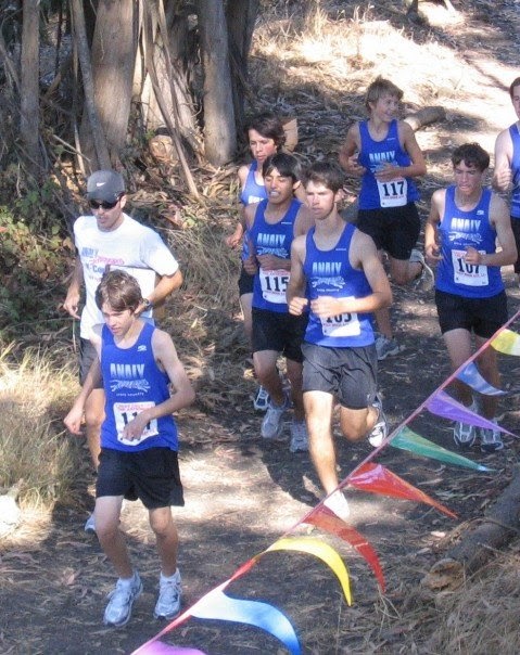 Good morning. What a moment for me to enjoy: typing up a blog while my dog lays in my lap chewing on his toy. I absolutley love it. The theme of my blog entry today is "Coach Josh" and it was inspired by a comment made by one of my Graduate Hall Directors, Brian, yesterday in our meeting. I was talking with him about what's next in our two year plan together and I after I finished he said, "wow, I think I was just talking to Coach Taylor (from Friday Night Lights." His comment really got me thinking and reminded me of this picture below of when I coached cross country at Analy High School in California.